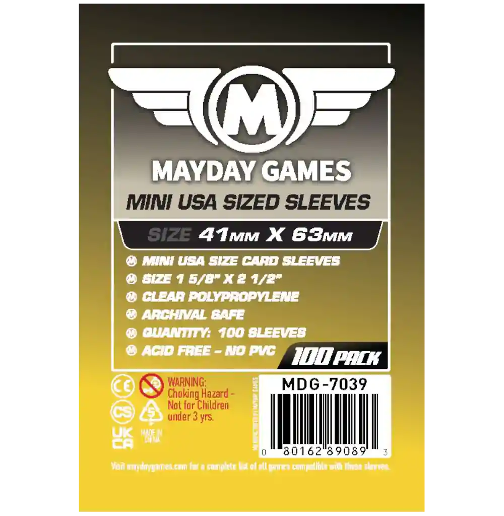 Fundas Mayday Games Mini USA 41x63mm (100 uds) – Protección total para cartas pequeñas de tamaño Mini USA.