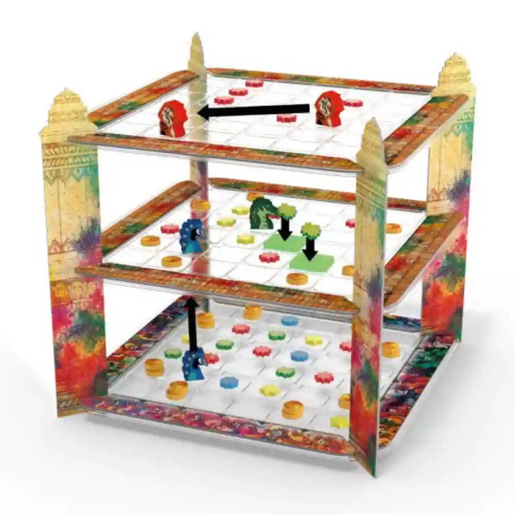 Sumérgete en la vibrante tradición india con Holi: Festival de Colores, un juego de mesa visualmente espectacular donde los jugadores compiten por lanzar polvos de colores en un tablero tridimensional que representa los diferentes niveles de una plaza.
