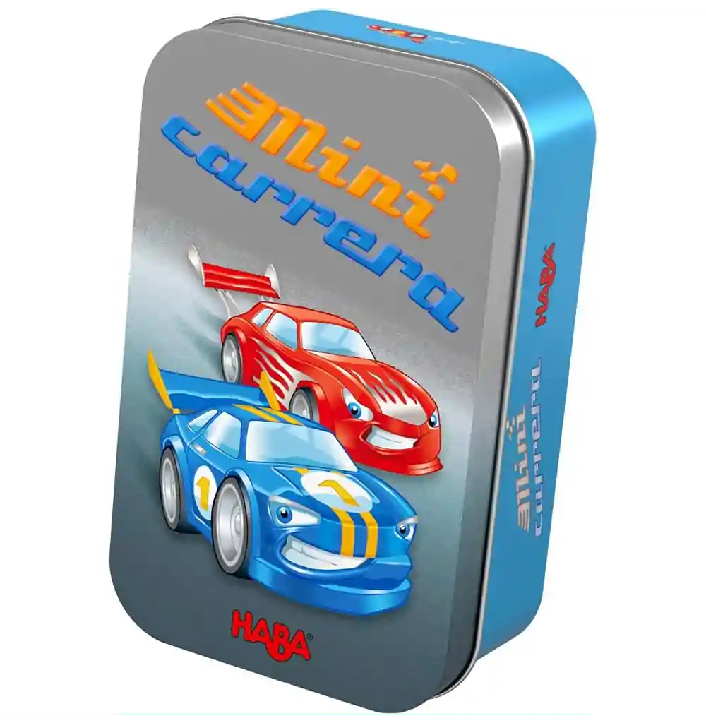¡Prepárate para la velocidad y la diversión con Mini Carrera de HABA! Un juego rápido, portátil y perfecto para toda la familia, presentado en un práctico formato de lata.